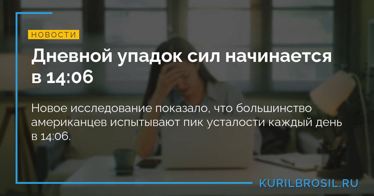 Каждый день примерно в 14:06 (02:06 pm) средний американец сталкивается с настоящим энергетическим спадом — чувствует себя усталым и не в силах справляться с делами. Именно к этому времени, согласно опросу 2 000 человек, энергия падает сильнее всего, и многие просто чувствуют, как садится батарейка.
