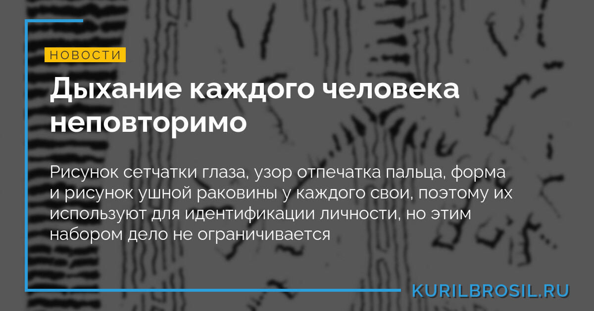 Тут-то и выяснилось, что дыхание очень индивидуально и так же уникально, как и отпечатки пальцев. Причем эта индивидуальность сохраняется при любом режиме дыхания — и когда испытуемый спит, и когда бегает, и когда работает или пьет чай с конфеткой. Используя индивидуальность носового воздушного потока, исследователи идентифицировали испытуемых с точностью до 96,8%. Так что тест на дыхание вполне имеет право на существование как биометрический маркер.