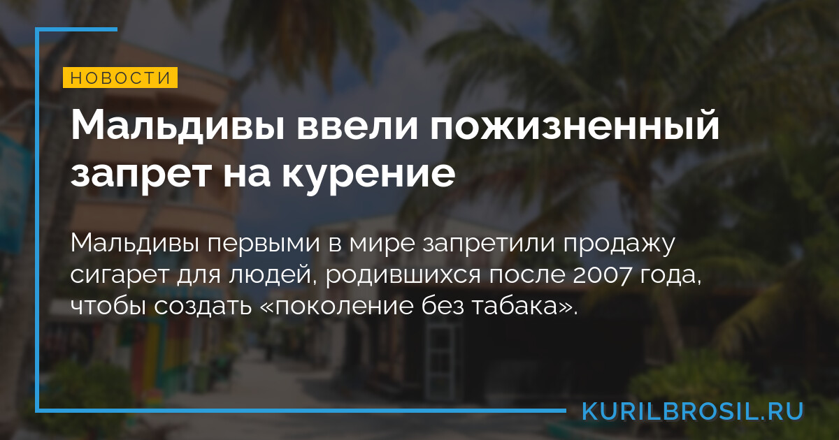 Мальдивы стали первой страной в мире, где введён пожизненный запрет на продажу и употребление табака для людей, родившихся после 1 января 2007 года.